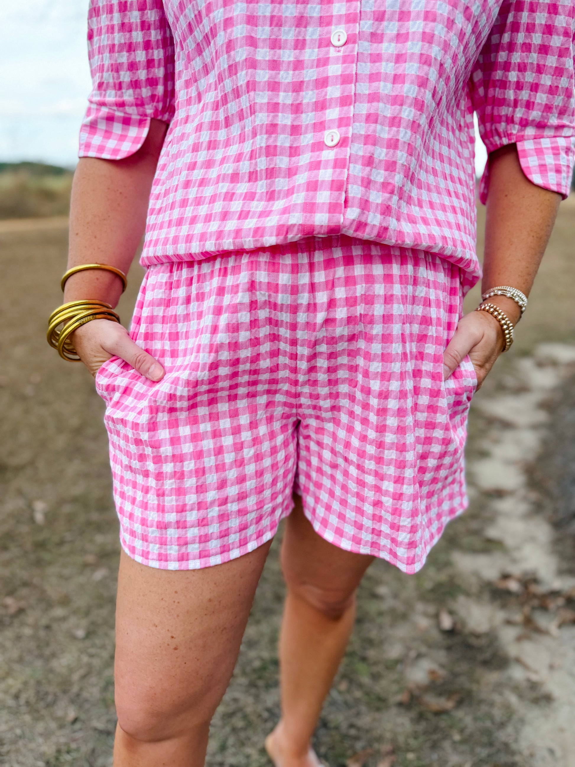 Plus Spring Faye Shorts in Pink Seersucker Gingham
